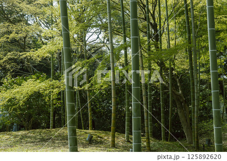 六義園 竹林 青竹 和 庭園