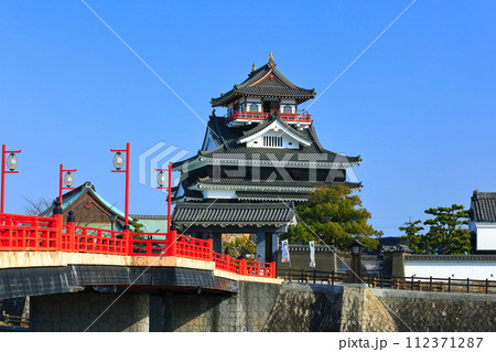 青空の清州城と朱色橋