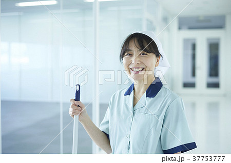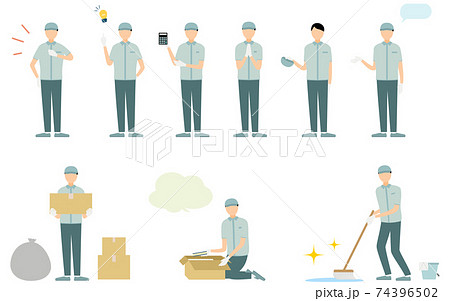清掃業者 クリーニングスタッフ ビルメン 家政婦 男女 掃除 案内 イラスト素材