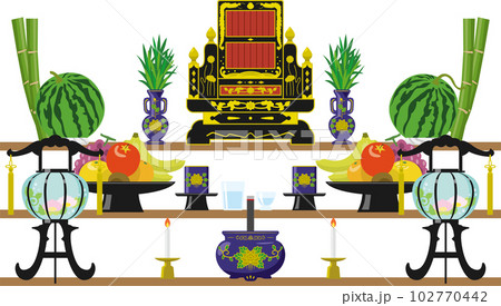 沖縄県の旧盆にみられる仏壇のイメージイラスト