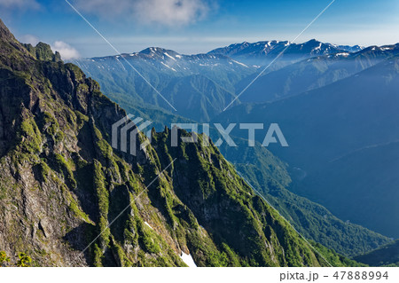 谷川岳・西黒尾根から見る朝日岳と巻機山方面の山並み