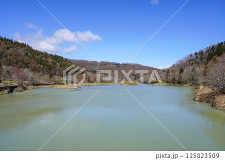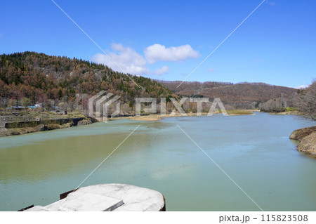北海道夕張市、桜が咲く時期の清水沢ダム【5月】