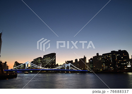 残照とイルミネーションに浮かぶ清洲橋