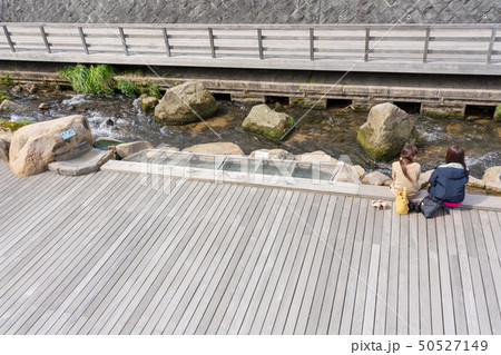 玉造温泉 足湯につかる女性