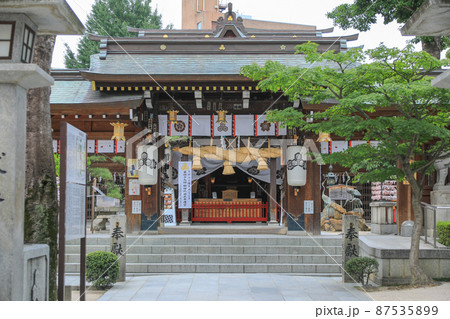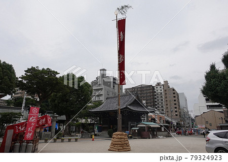 博多祇園追い山笠の無かった夏 櫛田神社 清道旗 隣に松ヶ枝餅 2021