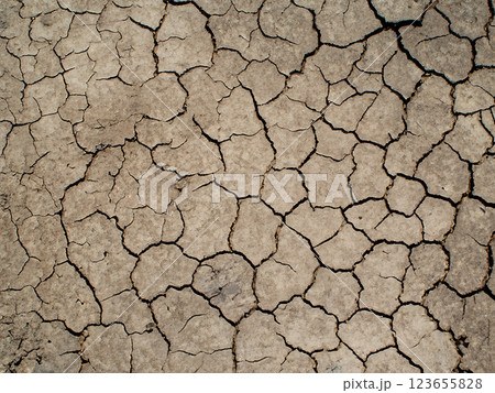 干魃、水不足のイメージ(ひび割れた田んぼ)