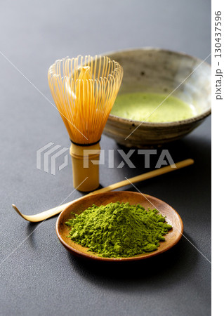 抹茶を点てる 黒背景の抹茶イメージ