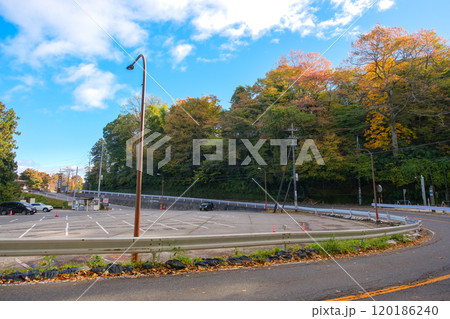 秋の群馬県高崎市 榛名神社参拝用の市営駐車場から大鳥居方面を見る