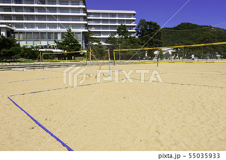 ビーチバレーコートとダイヤモンド渋川マリンホテル 渋川海水浴場 岡山県玉野市