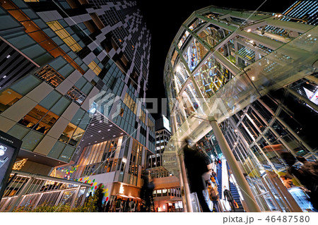 日本の東京都市景観 渋谷の新名所・明かりの灯った「渋谷ストリーム」(夜景)