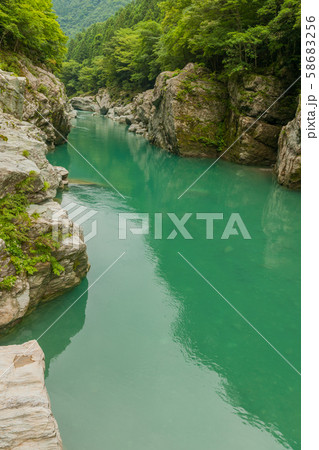渓深い清流松尾川の渓谷