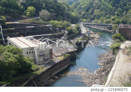 京都 宇治 天ケ瀬ダムの放流と天ヶ瀬発電所(晩春)