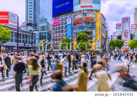 日本の東京都市景観 呪縛解放、マスク無しの方が増加したが、感染爆発はない…=4月19日、渋谷