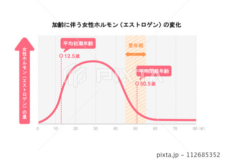 加齢に伴う女性ホルモン(エストロゲン)の変化グラフ