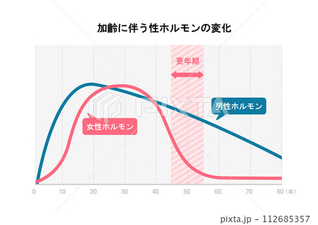 加齢に伴う男女の性ホルモン(エストロゲン・テストステロン)の変化グラフ