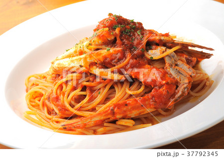 注意)お皿に若干の汚れ・レタッチ痕が残る場合があります。渡り蟹(ワタリガニ)のトマトクリームパスタ。