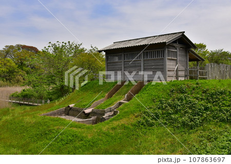 続日本100名城の秋田城 門と土塀