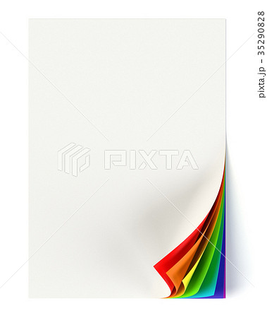 White document mock up with rainbow colored curled