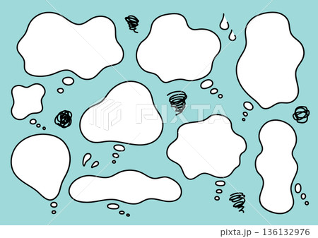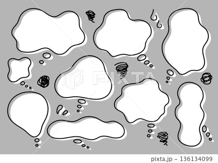 もやもや吹き出しセット 手描き シンプル線画