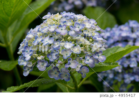 雨の日の青藤色のウズアジサイ