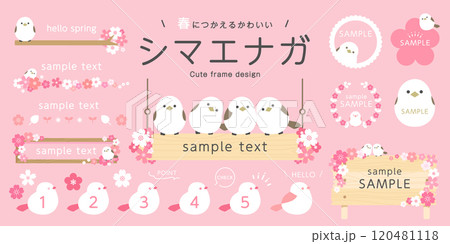 シマエナガ 春 デザインセット ( ベクター フレーム 桜 装飾 かわいい 小鳥 )