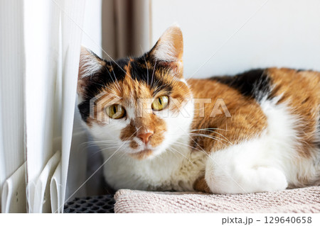 Charming Calico Cat Enjoying a Peaceful Moment by the Window