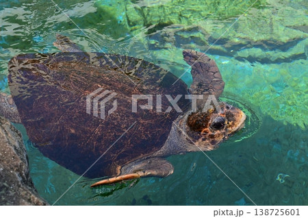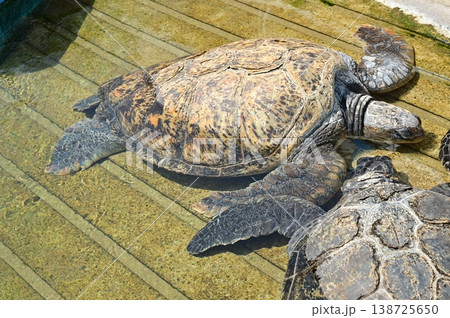 日光浴中のウミガメ