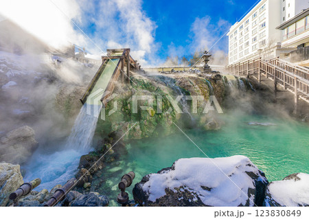 群馬県 吾妻郡草津町 草津温泉湯畑 湯滝