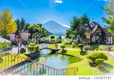 青空とヨーロッパ風の建物 河口湖 音楽と森の美術館