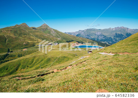 Fallbodensee lake and mountain at Jungfrau region in Switzerland