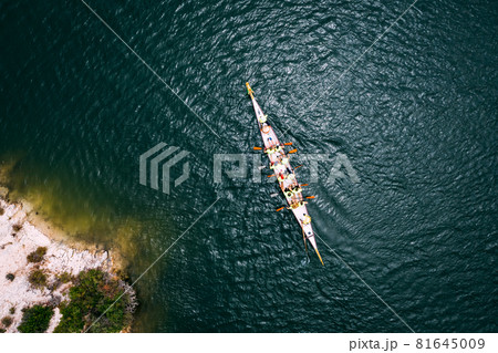 Two Men Paddling Double Kayak, Kayaking Water Sport, Outdoor Activities in Summertime, Top View
