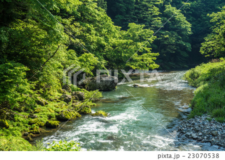 滋賀県湖北地方を流れる清流 新緑の高時川