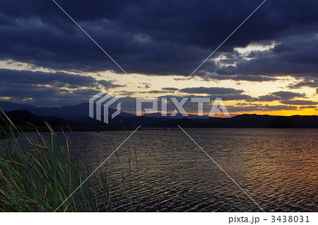 鳥取市 日没後の夕焼けが美しい湖山池の風景