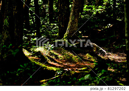 白駒池原生林の夜明け 苔