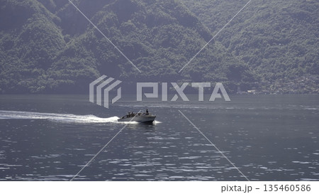 Boats cruising on azure water of Lake Como