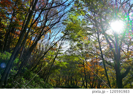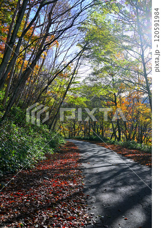 見ごろの紅葉 赤城大沼湖畔 秋色の風景
