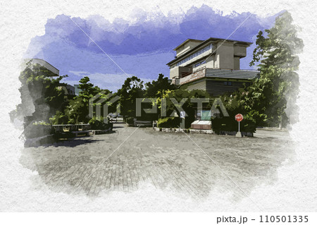水彩画風 加賀片山津温泉 温泉街 石川県加賀市