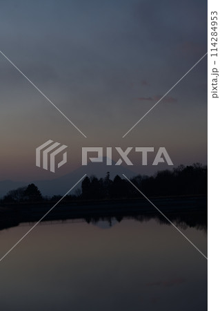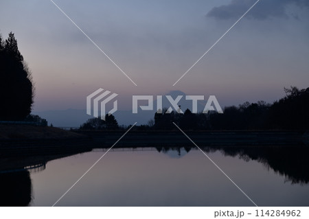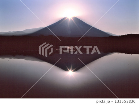 静岡県富士宮市長瀞調整池にてダブルダイヤモンド富士
