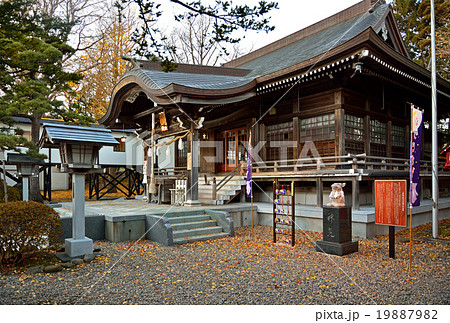 晩秋の北海道函館市湯の川で湯倉神社の境内の風景を撮影