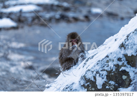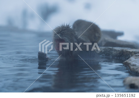 真冬の地獄谷野猿公苑 温泉に入る猿たち