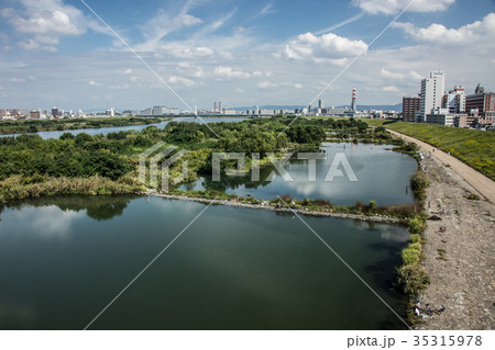 菅原城北大橋から望む城北ワンド 大阪市