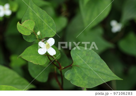 白い花をつけて咲く、和製ハーブ、ドクダミ
