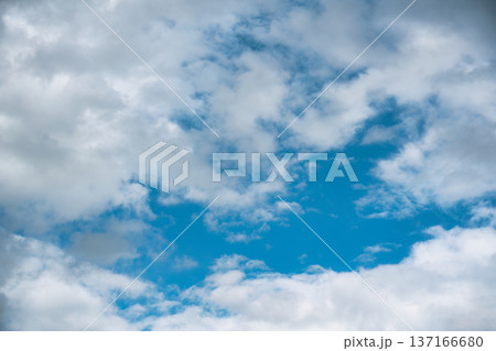 Clouds in the blue sky, Panoramic stage by light background during the summer day.