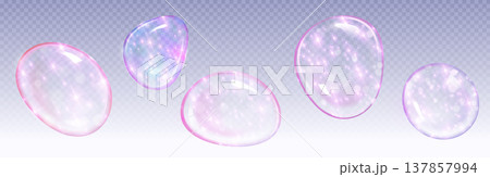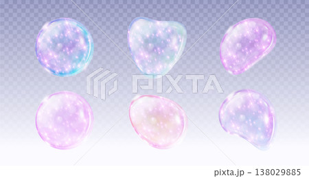 Blue bubble on white and transparent background. Bead, pearl or crystal shape. Sea, ocean or aquarium oxygen ball. Glycerin, hyaluron or collagen oil drop. Chewing gum texture. Vector illustration
