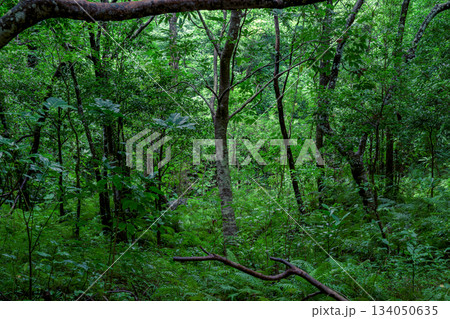湿った空気に包まれた石垣島の亜熱帯の森の緑の風景