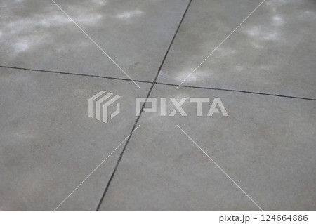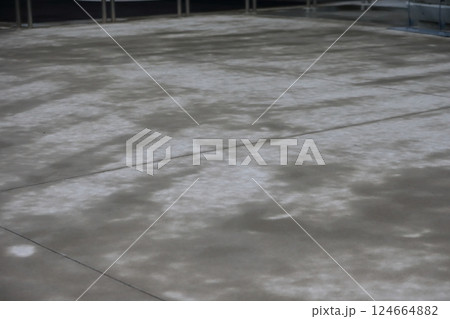 雨で湿った土間コンクリートの表面