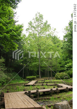 神奈川県中井町 厳島湿生公園の東屋と深緑