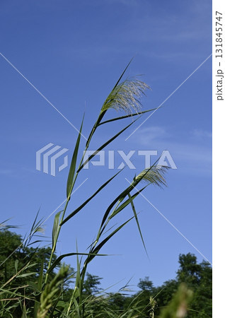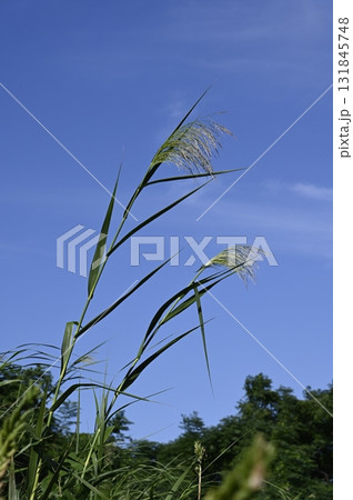 青空に映えるセイタカヨシ
