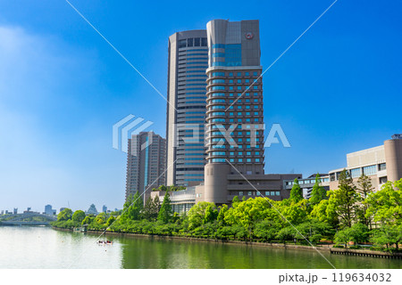 大阪市北区天満橋 大川と桜宮公園の初夏の風景