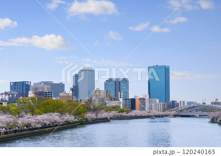 大阪市北区天満橋 源八橋から見る大川と大阪アメニティパーク(OPA)